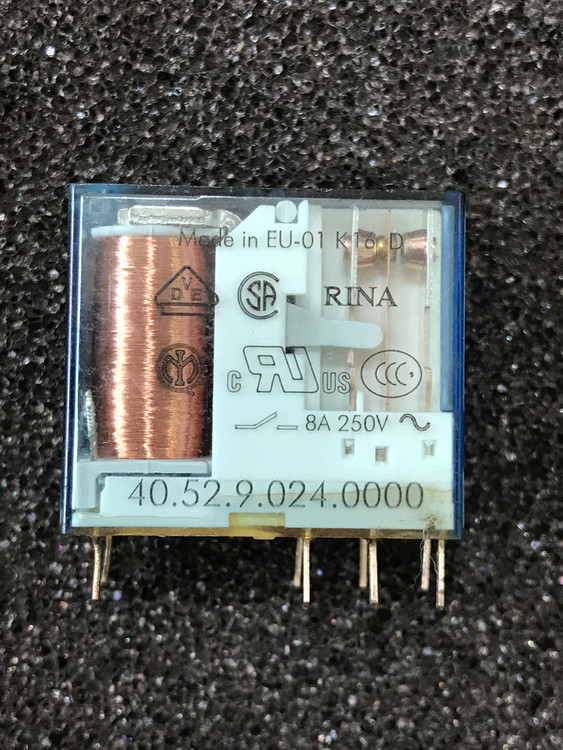 رله فیندر کد 40.52.9.024.0000 دارای ولتاژ نامی بوبین 24 ولت بوده و برای سیستم برق مستقیم (DC) مورد استفاده قرار میگیرد. حداکثر ولتاژ سوئیچینگ نیز برای این رله 220 ولت DC و 400 ولت متناوب (AC) میباشد.