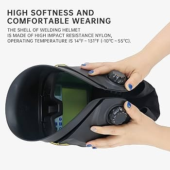 -طراحی filp up: به کارگر اجازه می دهد تا بدون برداشتن کلاه ایمنی یا تکمیل یک محافظ صورت اضافی، کارهای غیر جوشکاری را انجام دهد. پوسته کلاه جوشکاری از نایلون با مقاومت بالا در برابر ضربه ساخته شده است، دمای عملیاتی 14 درجه فارنهایت تا 131 درجه فارنهایت (-10 ℃ ~ 55 ℃) است.